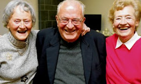 Fr Michael Sinnott with his sisters, Mrs Aine Kenny, left, and Mrs Kathleen O'Neill, right, at Dublin Airport, 3 December 2009